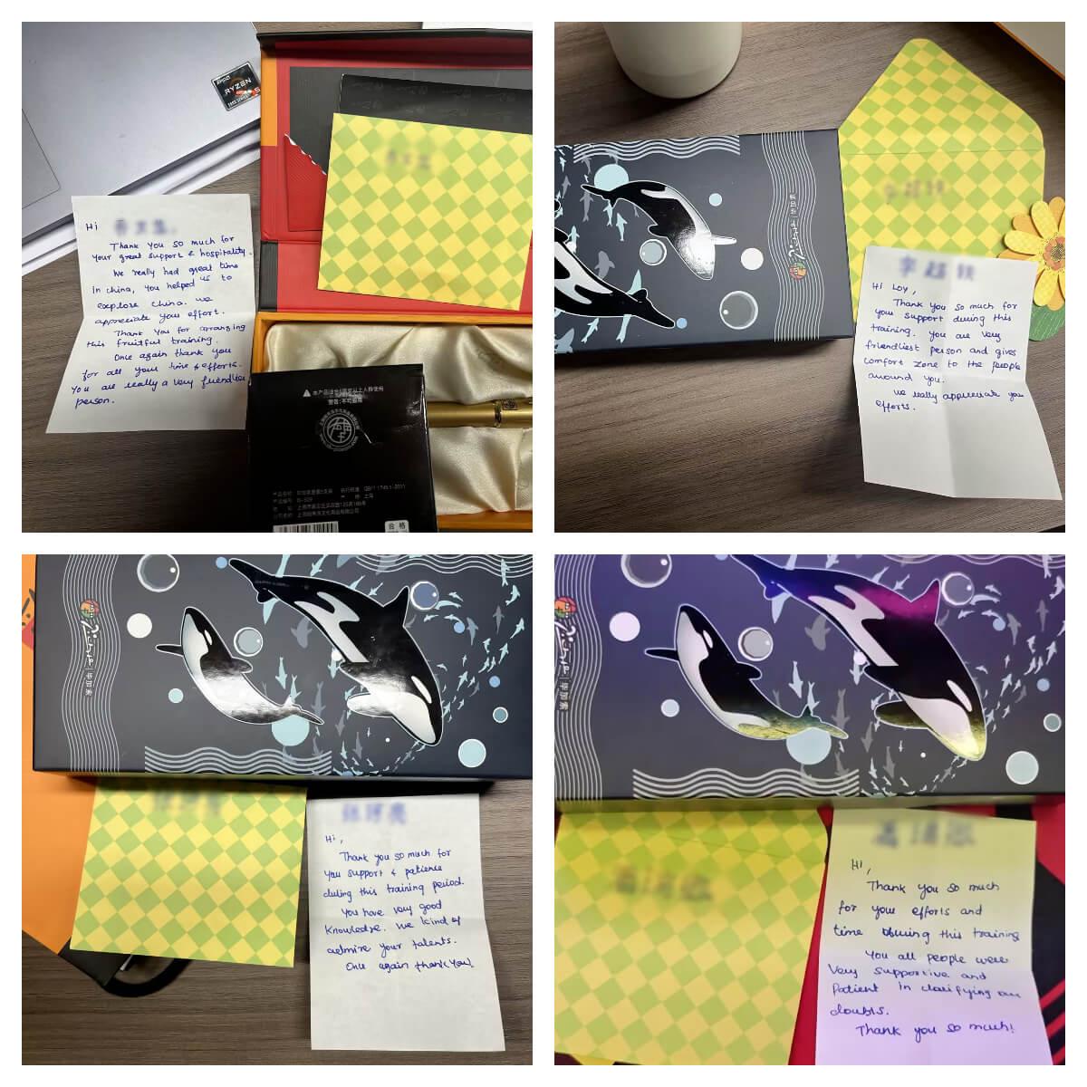 近日,milan.com为来自海外的合作伙伴开展的定制化培训项目圆满收官。在这场为期半个月的深度交流中,双方不仅碰撞出专业领域的智慧火花,更在朝夕相处中结下深厚情谊。临别之际,客户代表向我司四位核心员工赠送了象征友谊的定制钢笔,并亲笔写下四封饱含谢意与真诚的贺卡,为这段跨国合作添上一抹温情注脚。